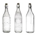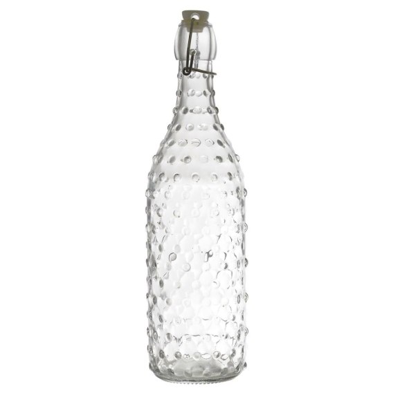 Szklana, ozdobna butelka sprawdzi się jako pojemnik na sok, ocet lub oliwę. Butelka występuje w trzech wzorach szkła. Pojemnośc butelki 1 litr. Zamykana ona jest korkiem z tworzywa oraz metalową klamrą. Można myć w zmywarce, Nie można używać w mikrofalówce Nadaje się do kontaktu z żywnością.
