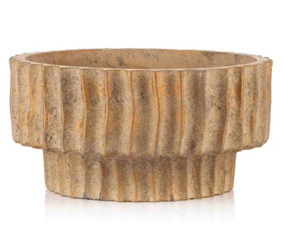 Osłona donicy (misa) MITTY-L, marki PTMD wykonana z cementu w ciepłym brązowym kolorze, wykończona żebrowanym wzorem. Wyrazista zewnętrzna powierzchnia osłony, nadaje solidny i naturalny wygląd. Idealna do stylowego eksponowania roślin i dekoracji zarówno w nowoczesnych, jak i rustykalnych wnętrzach.