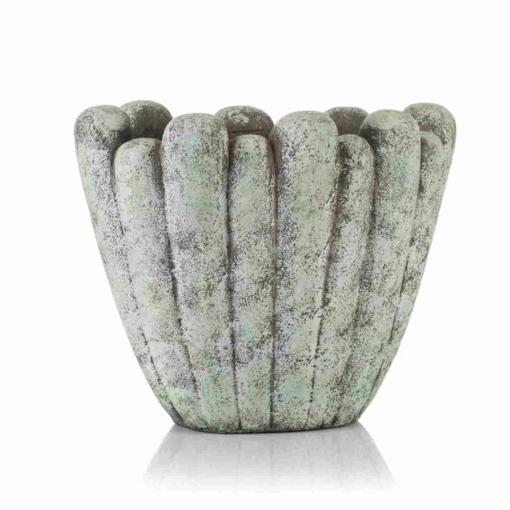 Dekoracyjna osłona doniczki z serii MINTER - M, marki PTMD została wykonana z cementu z wykończeniem w odcieniach szarości. Organiczny design z pionowymi wypustkami nadaje tej doniczce wyjątkowy wygląd. Idealny do prezentacji roślin w nowoczesnych koncepcjach wnętrz. Nadaje się do stosowania wewnątrz lub na zewnątrz pod zadaszeniem.