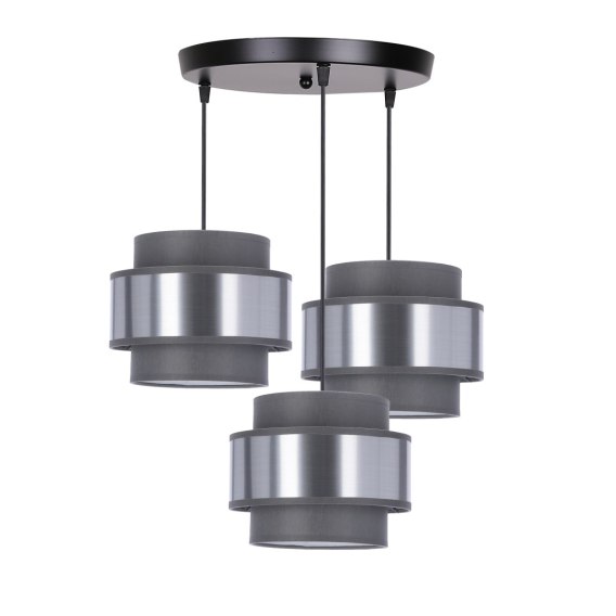 Hare lampa sufitowa czarny talerz 3x60W E27 abażur szary+srebrny