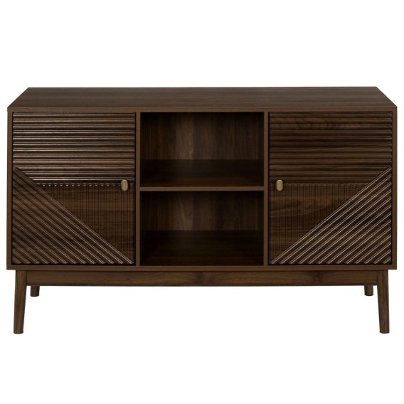 Komoda wymaga montażu Materiał: Płyta MDFw okleinie imitującej orzech. Nogi drewno sosnowe, uchwyty metal. Komoda wyposażona w 2 fronty za którymi kryją się dodatkowe półki. Max. obciążenie mebla 40kg.