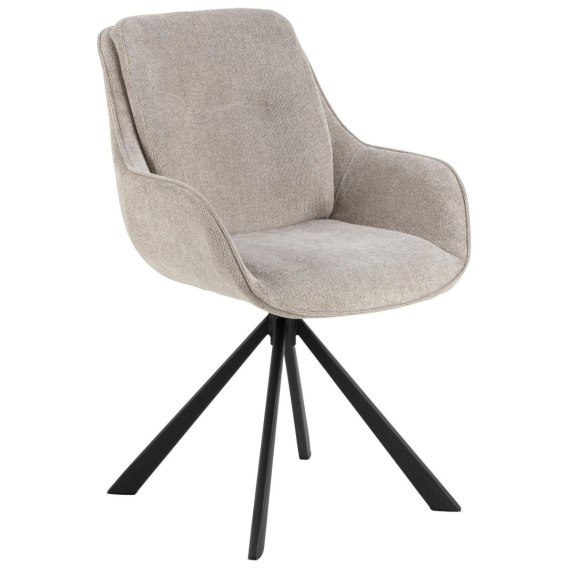 Krzesło do jadalni z podłokietnikami Carrie o eleganckich liniach wnosi do jadalni delikatny, przytulny design. Siedzisko posiada dodatkową warstwę o wyglądzie poduszki, przyszytą do oparcia, aby zapewnić przyjemne doznania i komfortowe oparcie. Dzięki szenilowemu obiciu w kolorze beżowym krzesło zapewnia kojące uczucie. Poruszanie się jest również łatwe, ponieważ siedzisko spoczywa na czarnej 4-gwiazdkowej podstawie z funkcją obrotu. Krzesło do jadalni Carrie w tkaninie Caso sand 4 FR, 4-gwiazdkowa podstawa z matowej, czarnej, szorstkiej stali malowanej proszkowo z poziomymi przeszyciami, obrotowa i z zamkiem błyskawicznym, EWykonane z materiałów ognioodpornych. Certyfikat FSC. Wysokość oparcia 43 cm Szerokość siedziska 44 cm Głębokość siedziska 43 cm Wysokość podłokietnika od podłogi 63 cm Szerokość podłokietnika 3 cm Głębokość podłokietnika 28 cm Wysokość podłokietnika 16 cm Max. obciążenie 110kg