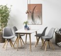 Nowoczesne krzesło Dima wykonane zostało z niezwykle eleganckiej tkaniny. Siedzisko obtoczone welurową tkaniną Corsica light grey 40 w kolorze szarym doskonale komponuje się z drewnianą podstawą wykonaną z drewna kauczukowego w naturalnym kolorze. Tkanina użyta w krześle ma matowe wykończenie, jest łatwa w czyszczeniu i odporna na zabrudzenia. Krzesło zaprojektowane zostało w stylu boho. Produkt jest lekki, jego maksymalne obciążenie wynosi 120kg. Krzesło wymaga montażu. Wysokość siedziska: 46 Głębokość siedziska: 40,5 Szerokość siedziska: 48 Max. ilość sztuk w kartonie: 2 Wymiary kartonu: 71cm x 51cm x 38 cm
