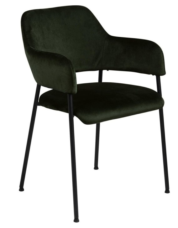 Krzesło z podłokietnikami Lima to elegancki model, dzięki któremu twoja jadalnia nabierze niepowtarzalnego charakteru. Na podstawie wykonanej z malowanego proszkowo metalu spoczywa siedzisko z elastycznej pianki poliuretanowej tapicerowane tkaniną Dublin fabric olive green 52. Nóżki krzesła są od spodu zabezpieczone nakładkami. Mebel posiada podłokietniki wyprofilowane wraz z oparciem z jednego elementu. Wymiary: 54x55x82cm Waga: 7,1kg