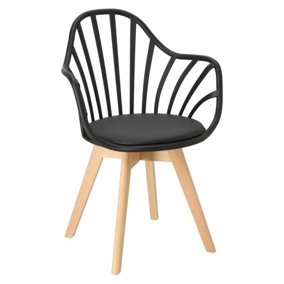 Krzesło Sirena doskonale odnajdzie się w nowoczesnej aranżacji, zarówno jadalnianej, jak i biurowej, stając się jej wizytówką. Wyposażony został w miękką poduszkę, pokrytą eko skórą w kolorze czarnym, która zapewni maksimum komfortu każdemu użytkownikowi. Praktyczne otwory w oparciu nadają całości oryginalnego wyglądu, jednocześnie gwarantując odpowiedni poziom wentylacji. Krzesło posiada podłokietniki, które gwarantują wygodne oparcie dla rąk. Podstawę krzesła stanowią nogi z drewna bukowego, trwałego i wytrzymałego, co gwarantuje użytkowanie przez długie lata. Usytuowany na niej siedzisko, wykonane zostało z polipropylenu. Polipropylen charakteryzuje się doskonałą wytrzymałością i odpornością na wodę, temperaturę i uszkodzenia mechaniczne. Tworzywo jest bardzo łatwe w utrzymaniu czystości, zatem bez problemu usuniesz z niego wszelkie zabrudzenia. Wymiary kartonu: 64x58x75 cm Max. ilość szt. w kartonie: 4