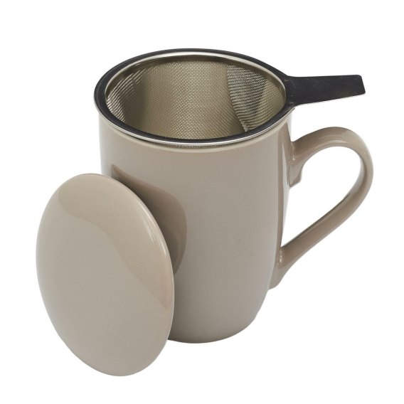 Kubek Mira beżowy z zaparzaczem i pokrywką