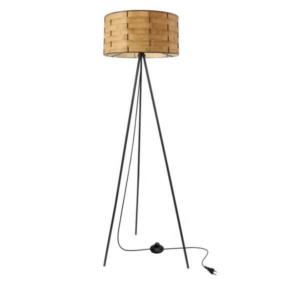 Lampa podłogowa FIANA czarna 1x40W E27 abażur sosnowy naturalny czarny nowoczesna stojąca do salonu sypialni biura oświetlenie d