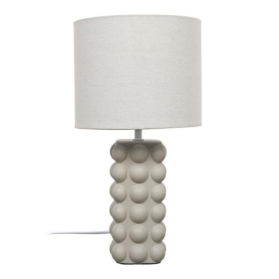 Lampka wykonana z ceramicznej podstawy oraz abażuru z tkaniny to idealny element wystroju, który swoim rozproszonym światłem doda nastroju w salonie lub sypialni. Lampka z gwintem na żarówkę E27 (brak w zestawie) wyposazona jest w przewód o długości 120cm z włącznikiem.