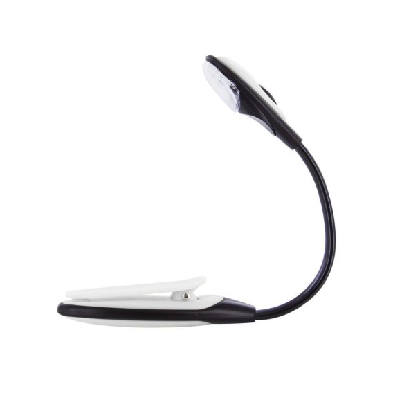 Lampka na klips do wieczornego czytania książek sprawdzi się nie tylko w domu podczas lektury w ulubionym fotelu ale również w bardziej nieprzyjaznych okolicznościach jak wieczorna podróż pociągiem lub samolotem. Ta przypinana lampka umożliwia czytanie w ciemności bez przeszkadzania otoczeniu. Przymocuj ją do książki, przełącz przełącznik i skieruj elastyczne ramię w najwygodniejszym kierunku. Ten kompaktowy rozmiar można zabrać ze sobą wszędzie! - Baterie w zestawie.
