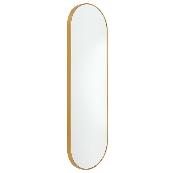 Lustro Camomille to uroczy dodatek do eleganskiej łazienki czy sypialni w stylu boho. Wiszące lustro o owalnym kształcie posiada plastikową ramę w kolorze złotym. Dzięki smukłej formie nada wnętrzu lekkości. Będzie się pięknie komponować z roślinami oraz minimalistycznymi dodatkami. Ilość kartonów: 1 Wymiary kartonów: 30x100x3cm