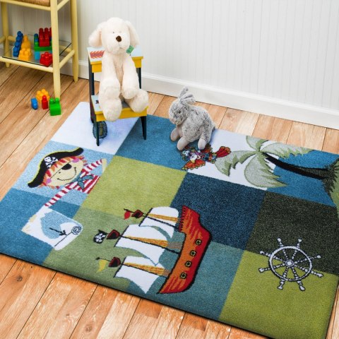 Dywan z kolekcji Mondo z motywem pirata doskonale odnajdzie się w pokoju małego poszukiwacza przygód. Do jego produkcji zostały użyte materiały najwyższej jakości, dzięki czemu jest on odporny na wszelkiego rodzaju odkształcenia i odbarwienia. Dywan nie tylko pięknie się prezentuje, ale również będzie chronił dziecko od zimnej podłogi.