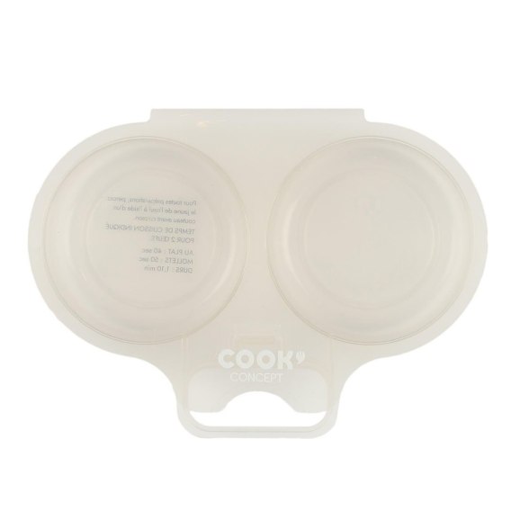 Dzięki temu pojemnikowi z silikonu łatwo ugotujesz jajko sadzone w mikrofalówce. Pjemnik wyposazony w dwie przegródki na jajka. Wystarczy wbić jajka i wstawić do kuchenki. Łatwy sposób na podanie równych, dobrze ugotowanych jajek.