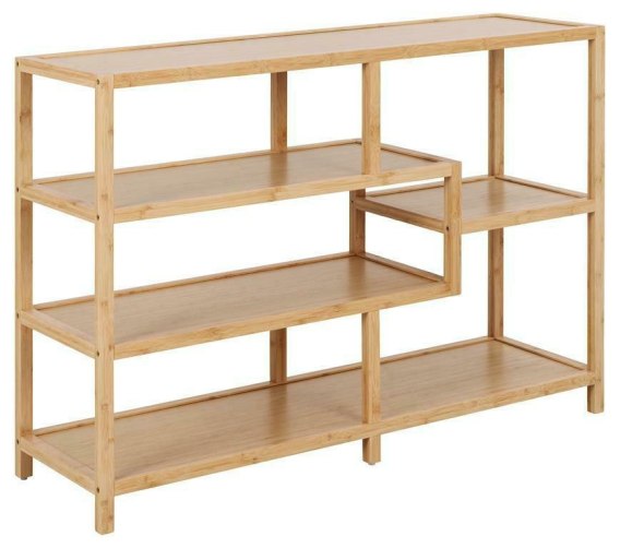 Regał Moso, wykonany w całości z bambusa, zapewnia delikatną estetykę, ale także trwałość. Asymetryczne detale sprawiają, że regał ten jest godny uwagi. Wyposażony w 4 półki, zapewnia mnóstwo miejsca do eksponowania ulubionych przedmiotów i dekoracji. Ten regał ma nowoczesny klimat i łatwo integruje się z każdym domem.