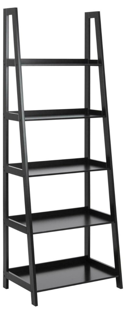 Regał Wally II w kolorze czarnym to eleganckie i designerskie półki na ciekawej podstawie. Regał przypominający drabinę został wykonany z płyty mdf lakierowanej na kolor czarny oraz drewna bambusowego również w kolorze czarnym. Każda z pięciu półek posiada maksymalny udźwig do 30kg. Waga regału to: 16,5 kg Ilość sztuk w kartonie: 1 Wymiary kartonu: 187cm x 46cm x 10cm
