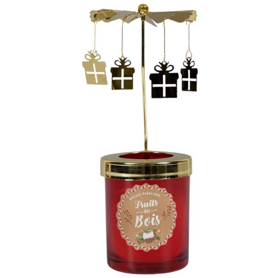 Świeca zapachowa, która doda nastroju nie tylko dzięki zapachowi pierniczków ale równiez dzięki kręcącej się złotej karuzeli. Karuzela napędzana ciepłem ze świecącej się świecy obraca się, tworząc magiczną atmosferę. Wosk użyty do świecy: parafina. Słoiczek wykonany ze szkła. Karuzela wykonana z metalu malowanego na złoty kolor. Waga parafiny: 85g. Knot bawełniany