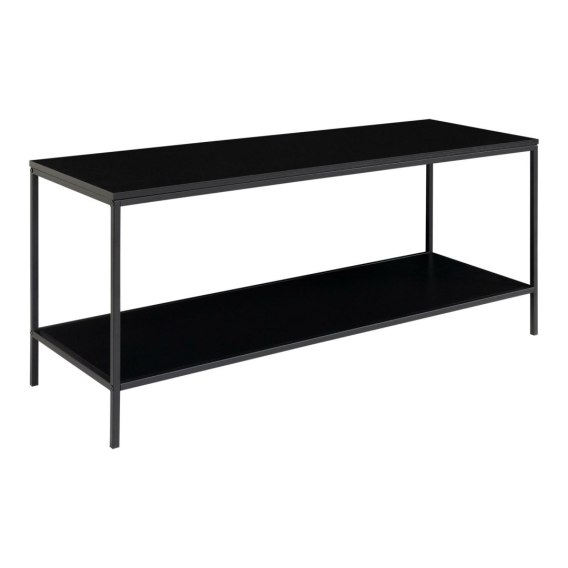 Szafka RTV o prostej, nienachalnej konstrukcji wpisze się we wnętrzu zarówno loftowym jak i boho. Regał złożony z dwóch blatów w okleinie imitującej dąb wsparty został na szkielecie z metalu pomalowanego proszkowo na czarno. Prostota mebla sprawia, że jest on idealną bazą dla naszej przestrzeni, która możemy ozdobić lustrami, figurkami lub ciekawymi dużymi koszami. Waga szafki: 7,8 kg Okleina imitująca dąb Wymiary opakowania: 105x38x6 cm