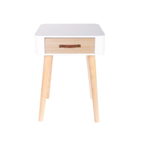 Szafka nocna Enano to nie tylko praktyczny mebel do sypialni, ale i prawdziwa ozdoba pomieszczenia, wykończona w stylu skandynawskim. Mebel pięknie łączy w sobie biel korpusu i blatu z naturalnym drewnianym frontem szuflady oraz drewnianymi nogami. Lekko zaokrąglone krawędzie, charakterystyczne skośne nóżki oraz ciepły odcień drewna nadadzą wnętrzu przytulny klimat. Szafka występuje również w kolorze szary. Dzięki swojej barwie i ponadczasowej formie sprawdzi się także w połączeniu z innymi meblami wykończonymi w bieli lub jasnych odcieniach drewna. Wymiary opakowania: 39x32,5x38 cm Max. ilość szt. w kartonie: 2 Waga: 8kg
