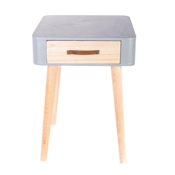 Szafka nocna Enano to nie tylko praktyczny mebel do sypialni, ale i prawdziwa ozdoba pomieszczenia, wykończona w stylu skandynawskim. Mebel pięknie łączy w sobie szarość korpusu i blatu z naturalnym drewnianym frontem szuflady oraz drewnianymi nogami. Lekko zaokrąglone krawędzie, charakterystyczne skośne nóżki oraz ciepły odcień drewna nadadzą wnętrzu przytulny klimat. Szafka występuje również w kolorze białym. Dzięki swojej barwie i ponadczasowej formie sprawdzi się także w połączeniu z innymi meblami wykończonymi w szarości lub jasnych odcieniach drewna. Wymiary opakowania: 39x32,5x38 cm Max. ilość szt. w kartonie: 2 Waga: 8kg