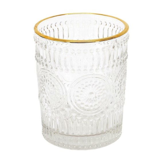 Delikatność i urok to słowa opisujące szklanki Lisere ze złotą obwódką. Szklanki o pojemności 250 ml będą nie tylko idealnym naczyniem na sok, ale również ozdobą nakrycia stołu. Transparentna szklanka z modnym wzorem w stylu modern glamour sprawdzi się podczas uroczystości rodzinnych jak i na co dzień. Szklanki nie można myć w zmywarce oraz nie można używać w kuchence mikrofalowej.