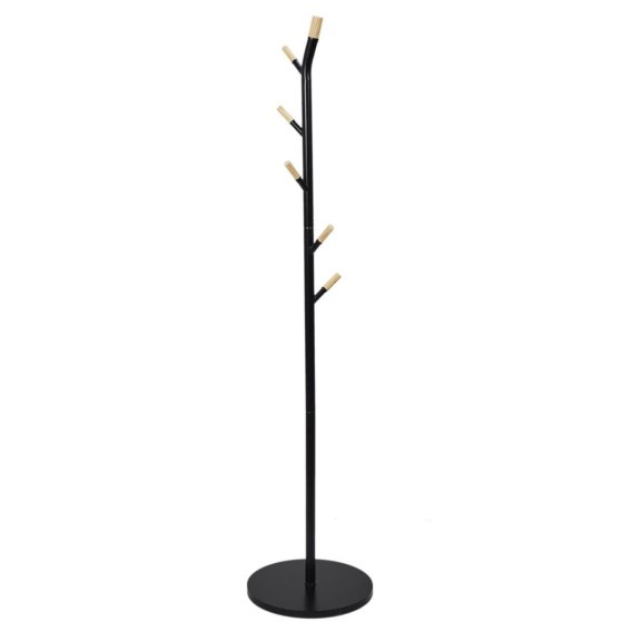 Metalowy, wysoki wieszak podłogowy sprawdzi się w przedpokoju lub poczekalni. Wieszak wykonany z malowanego proszkowo metalu. Jego haki zakończone zostały drewnianymi wstawkami. Wymaga montażu Max. obciążenie na 1 haczyk 3kg. Wymiary kartonu: 47,5x9x61cm, Waga 4,3 kg