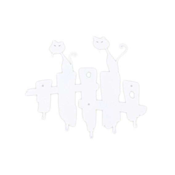 Wieszak ścienny Koty to stylowe rozwiązanie do przedpokoju, holu lub poczekalni. Wycięty laserowo wzór przedstawiający koty na płocie, nada uroku każdemu wnętrzu. Stalowy malowany proszkowo wieszak jest uniwersalny oraz odporny na uszkodzenia. Matowe wykończenie dodaje listwie stylu. Dzięki 5 haczykom o udźwigu do 3kg każdy, możemy powiesić na wieszaku klucze, kurtki lub nawet torby. Produkt dostępny jest w dwóch kolorach co zwiększa jego możliwości aranżacyjne. Maksymalne obciążenie to 15kg. Do wieszaka załączany jest zestaw montażowy, który składa się z kołków, zaślepek i śrubek.