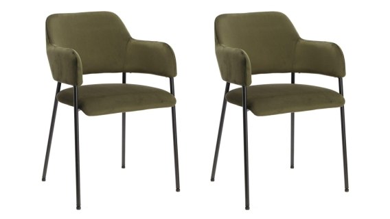 Zestaw 2 krzeseł Lima welurowych z podłokietnikami zielone