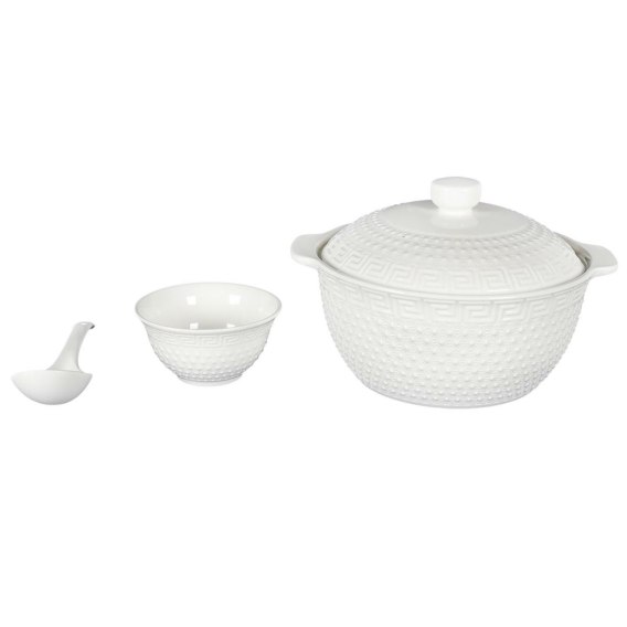 Zestaw do serwowania zupy wyposażony jest w wazę z łyżką oraz 6 misceczek. Wszystkie elementy zestawu wykonane zostały z ceramiki. Zestaw będzie idealny do podania zupy PHO. Waga (g): 4572 Materiał: Ceramika