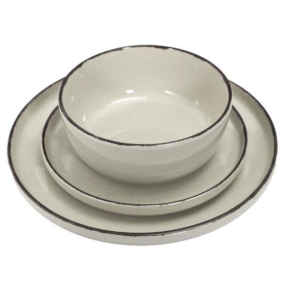 Zastawa obiadowa Temp wykonana została z modnej ceramiki kamionkowej. Naturalny beżowy kolor oraz nieregularny kształt i tekstura dodają zastawie charakteru stylu japandi. Zestaw składa się z 4 miseczek na zupę o pojemności 600ml oraz wymiarach wysokość 6,6cm i średnica 16,5cm, 4 talerzy o średnicy 20,5cm i wysokości 2cm oraz 4 talerzy o średnicy 27,3cm oraz wysokości 2,6cm. Zestaw pozwoli na nakrycie stołu w efektowny sposób dla czterech osób.